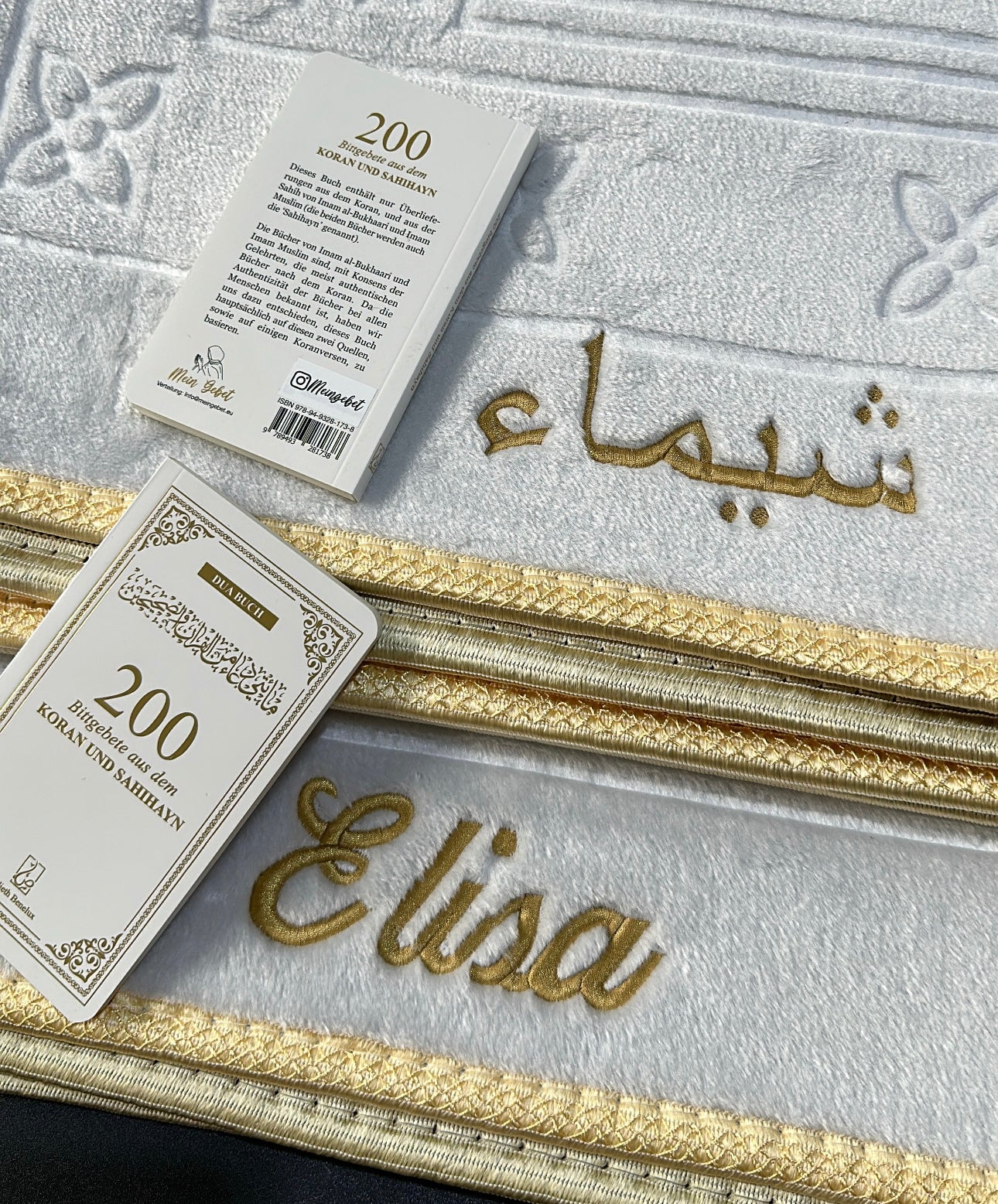 Lass deinen Gebetsteppich mit deinem eigenen Namen oder dem Namen der Person, die du beschenken möchtest, besticken ✨